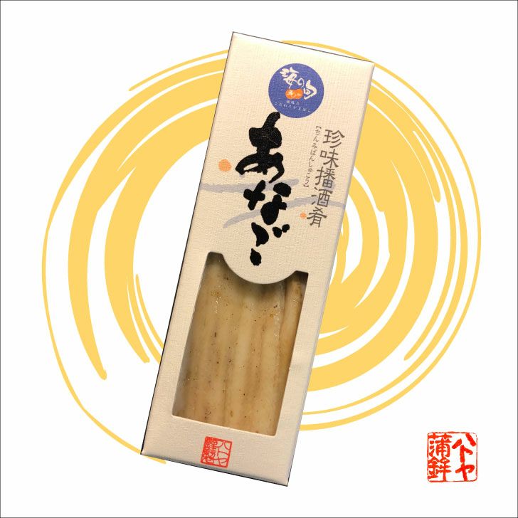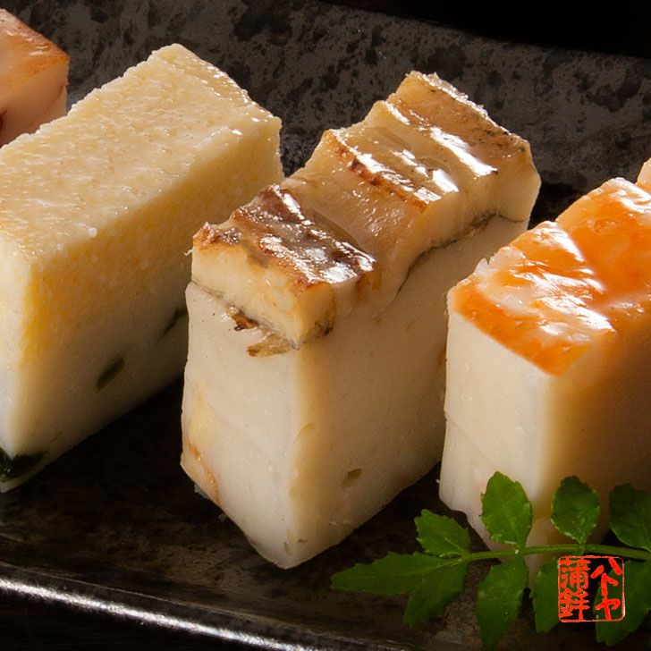 姫路名物としても知られる「あなご」を蒸したものを、ハトヤ秘伝のすり身に練りこみ、さらに「箱寿司」のように乗せた満足な味わいと食感を持つ、おつまみにピッタリな新感覚の珍味かまぼこです。