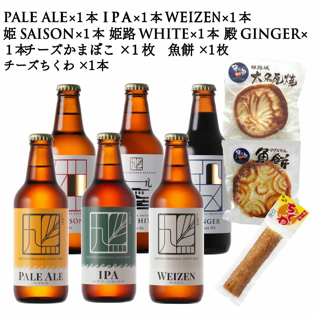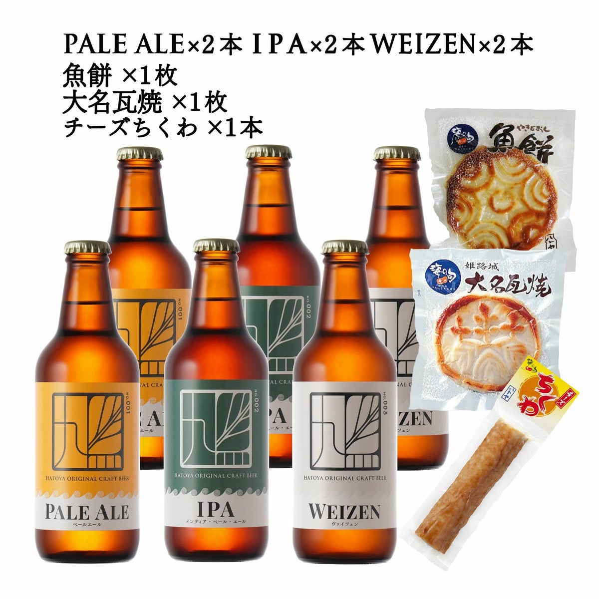 他の画像を見る Pale Ale(ペールエール)・IPA(アイピーエイ)・Weizen(ヴァイツェン)各2本の6本と3種のおつまみセット クラフトビール“鳩(はと)シリーズ”6本+焼き通し蒲鉾とチーズ竹輪のセット アルコール飲料 クール便でお届け 価格 ¥ 5,345 税込 姫路鳩屋麦酒のクラフトビール定番6種の【Pale Ale】【IPA】【Weizen】と、 焼抜き蒲鉾【大名瓦焼】【魚餅】と人気の【チーズちくわ】のセットです 詳細を見る お気に入りに登録する