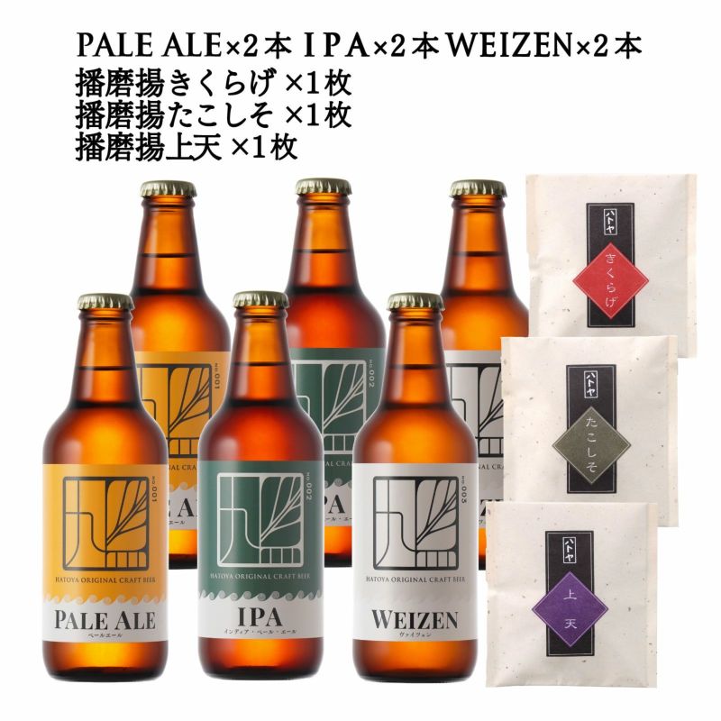 鳩シリーズのクラフトビール『IPA』と『Weizen』の二種を、各種3本ずつ、6本に結び合わせたセットです。IPAの苦味とWeizenの甘味、異なる2種のテイストを楽しむことができます。