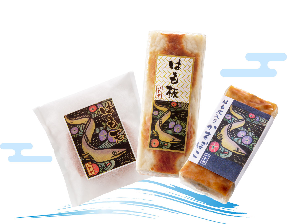 はも皮入りかまぼこにも使用されており、また、店頭のみの限定商品「はものかわ」は、「これが一番おいしい!」と大好評の商品です。